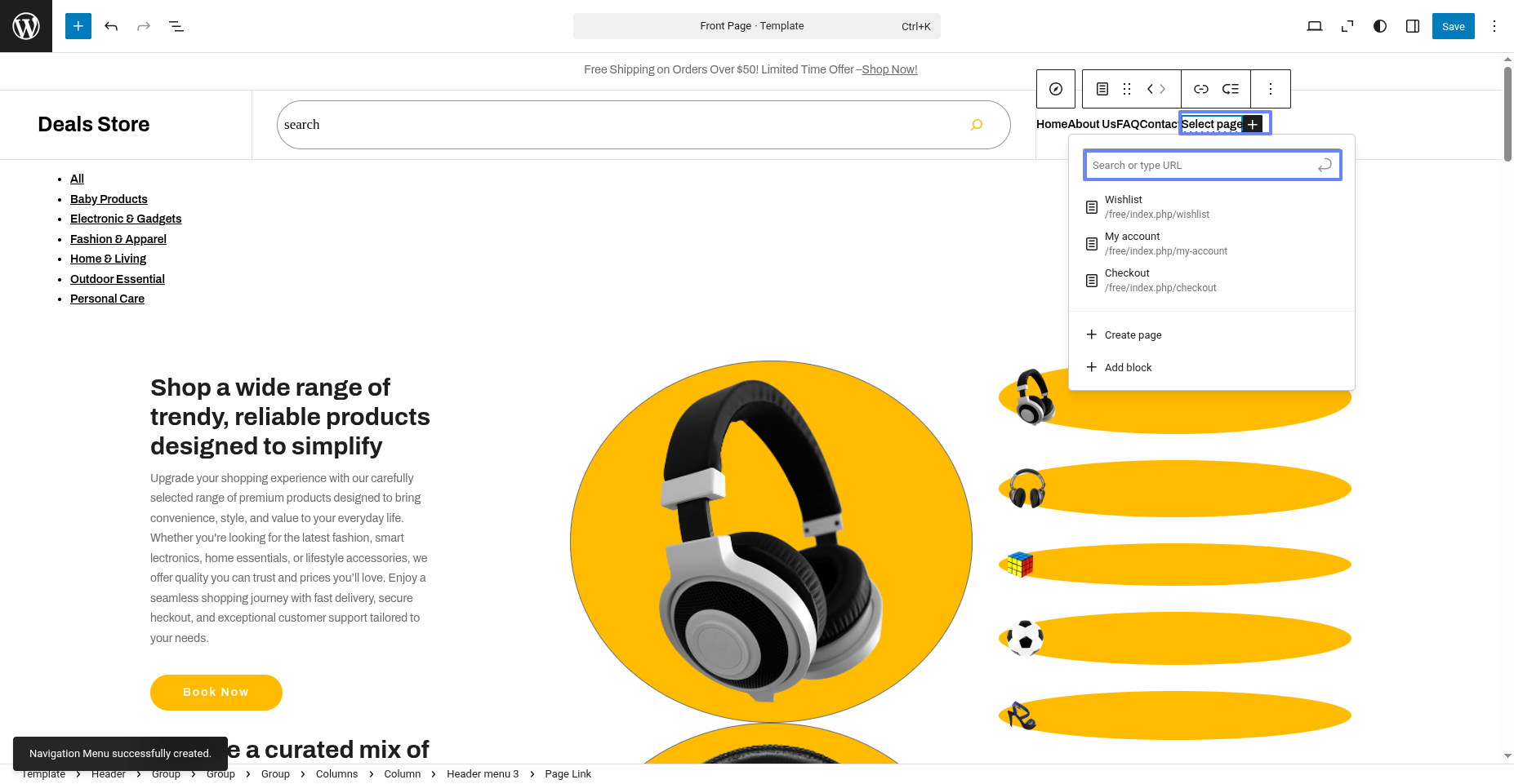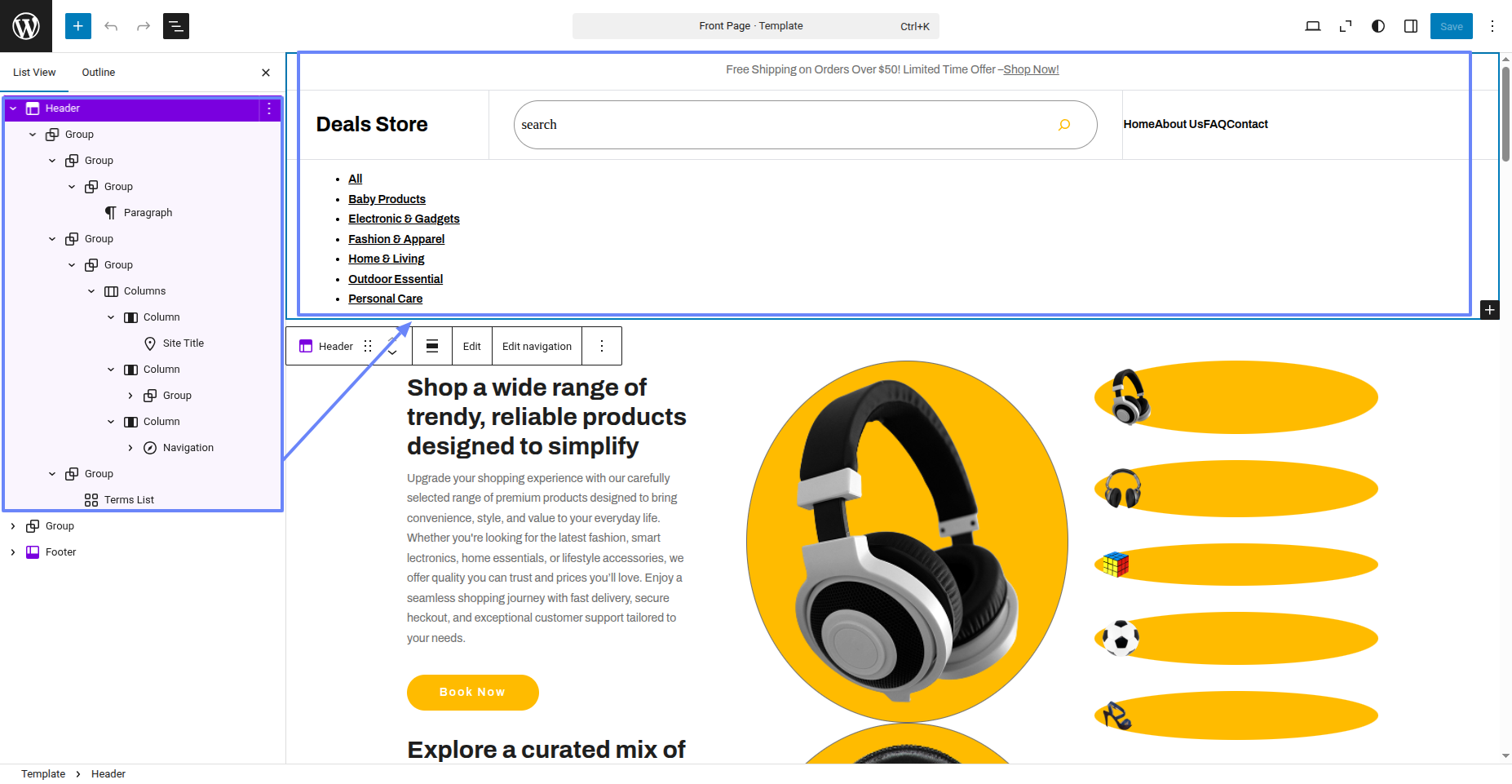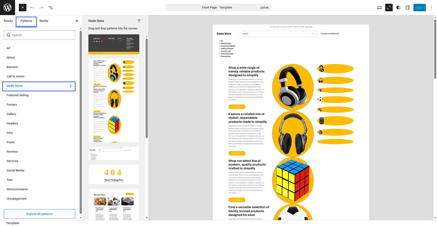 Tap "Deals Store" during the list that appears when the side panel is appeared. Each theme is a pattern that may is able to implemented to each page.