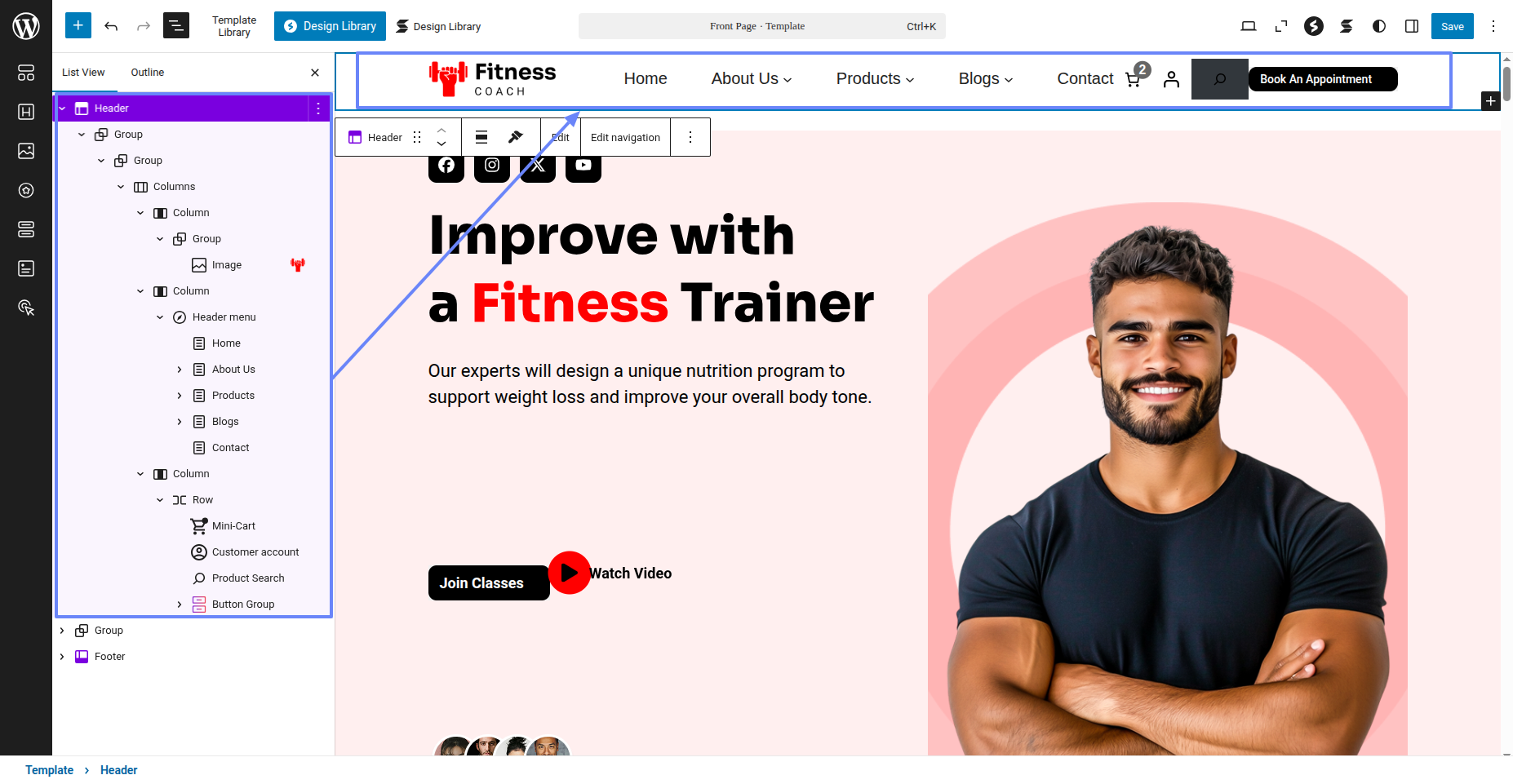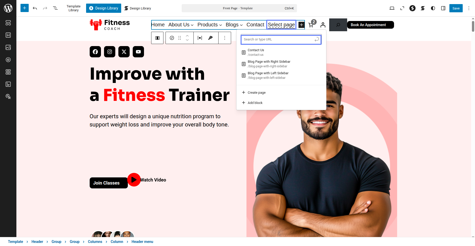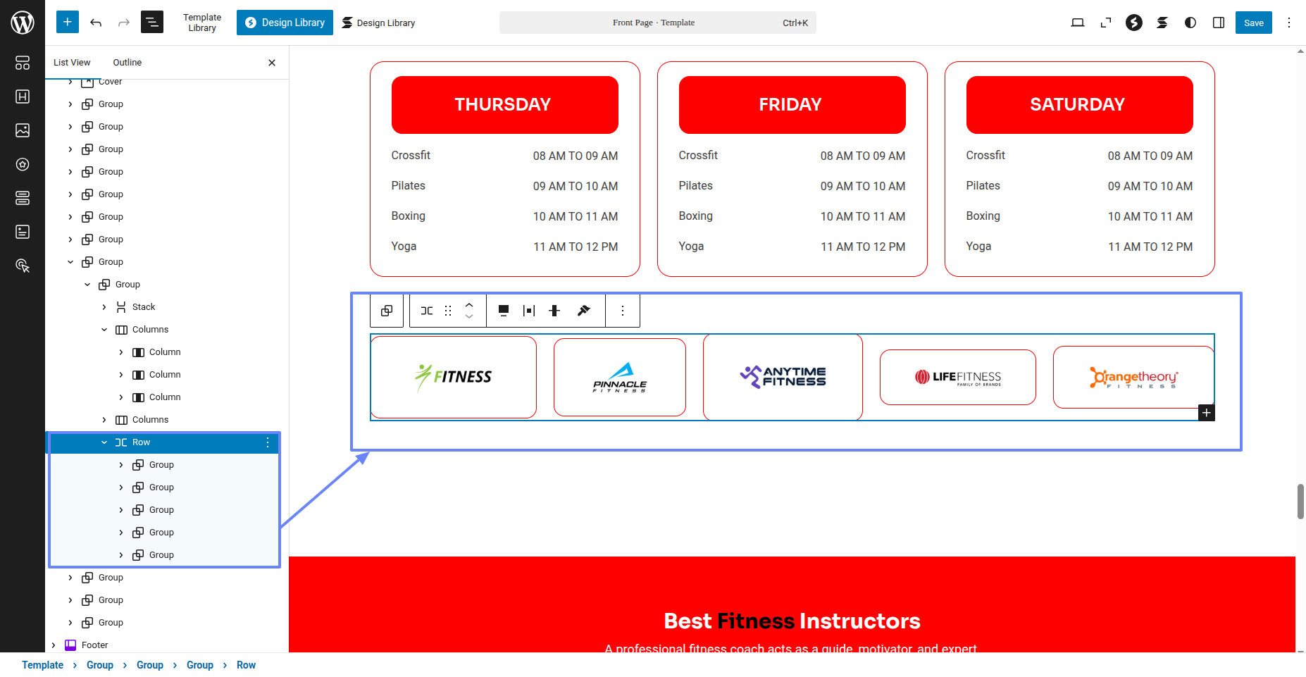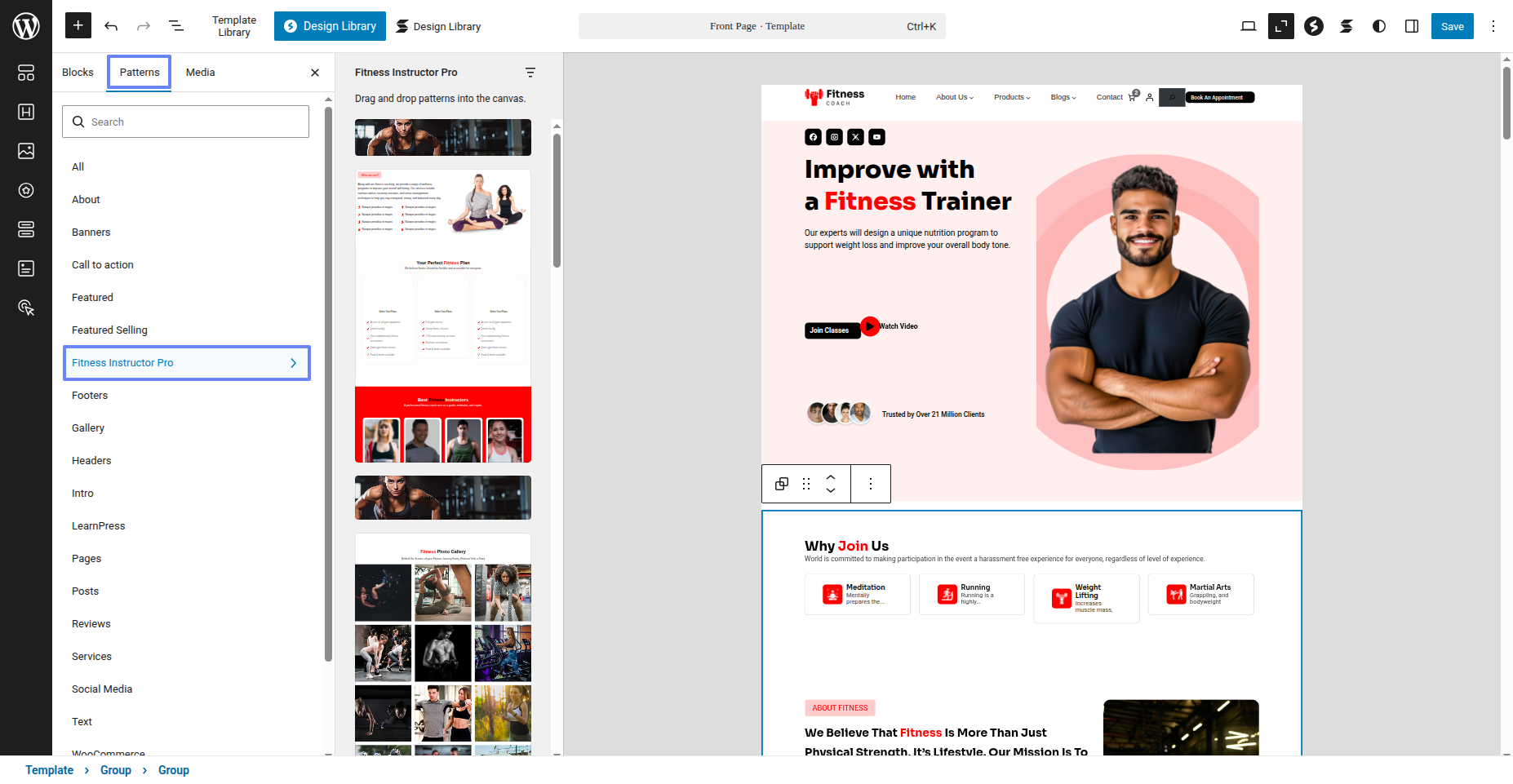 Tap "Fitness Instructor Pro" during the list that appears when the side panel is appeared. Each theme is a pattern that may is able to implemented to each page.