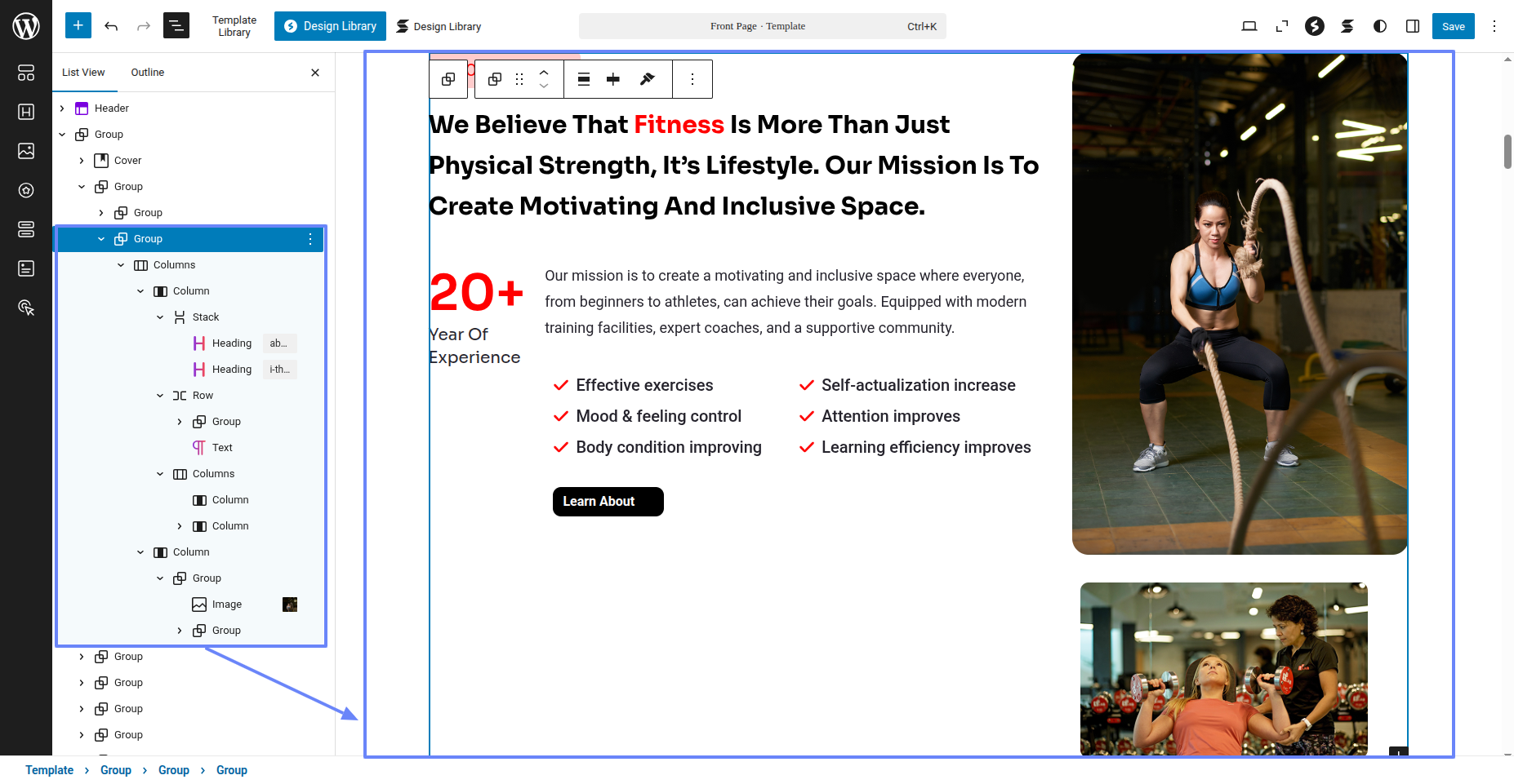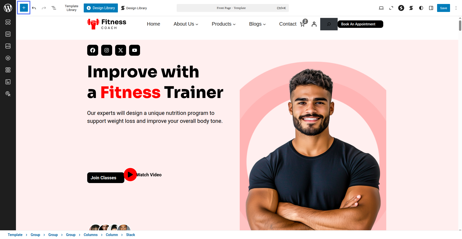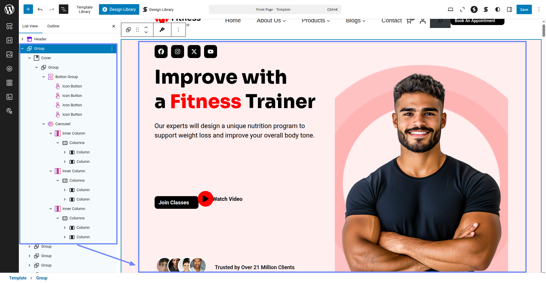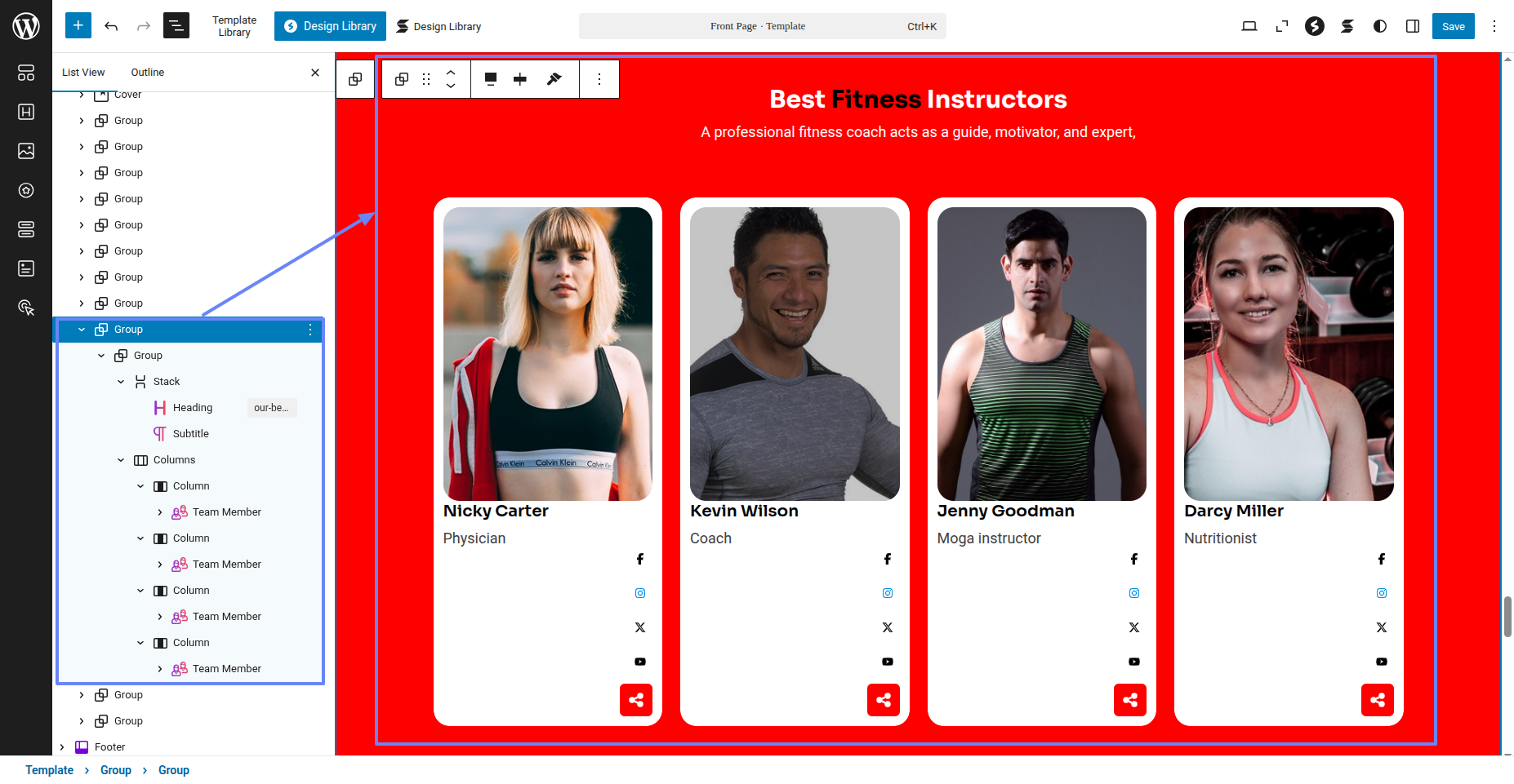 Tap "Fitness Instructor Pro" during the list that appears when the side panel is appeared. Each theme is a pattern that may is able to implemented to each page.