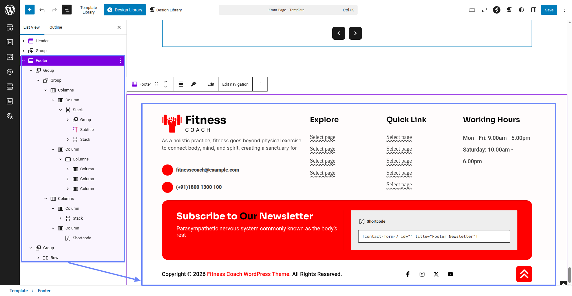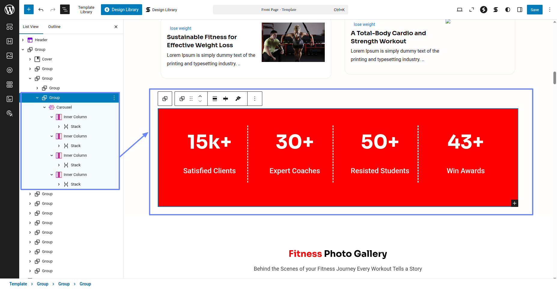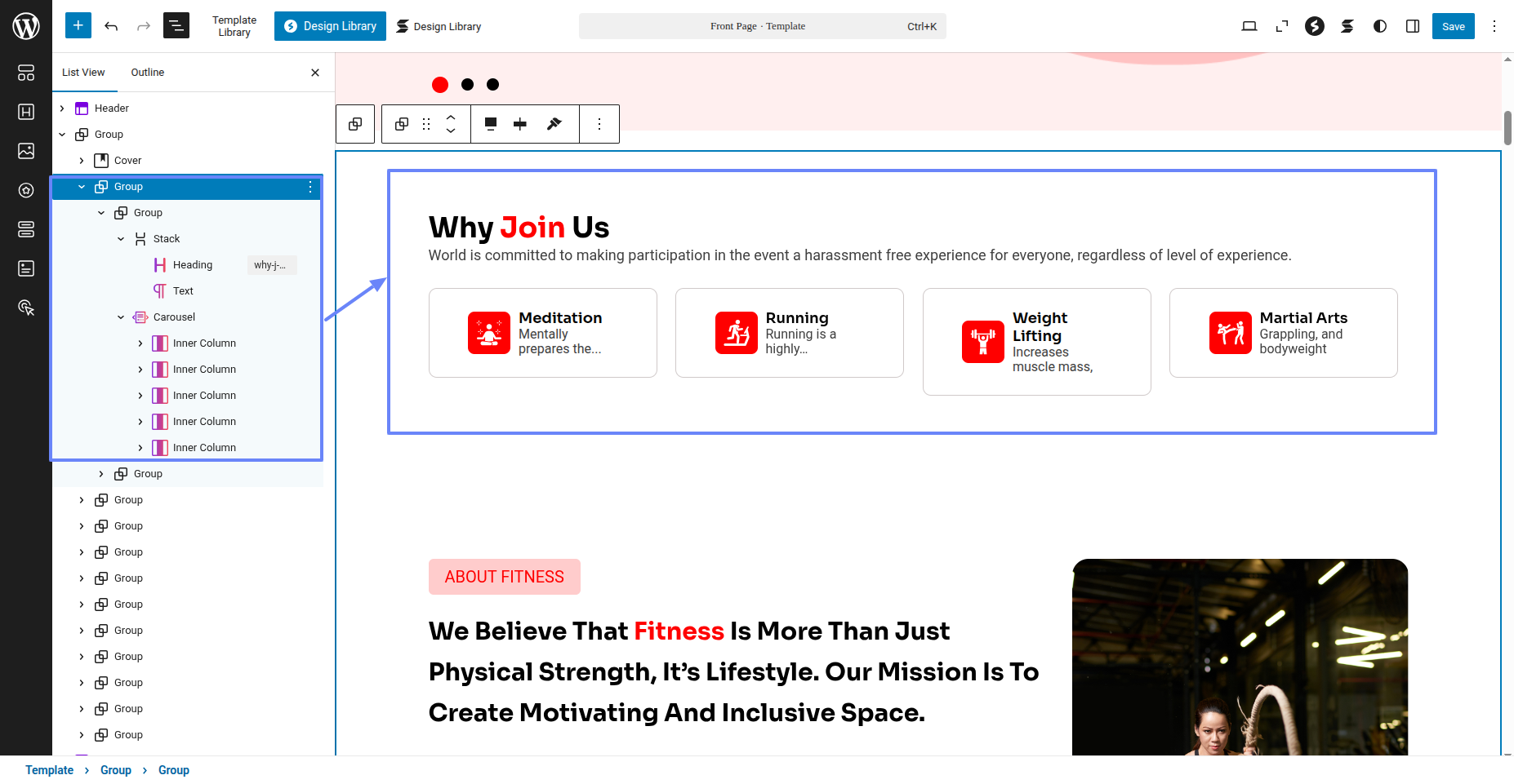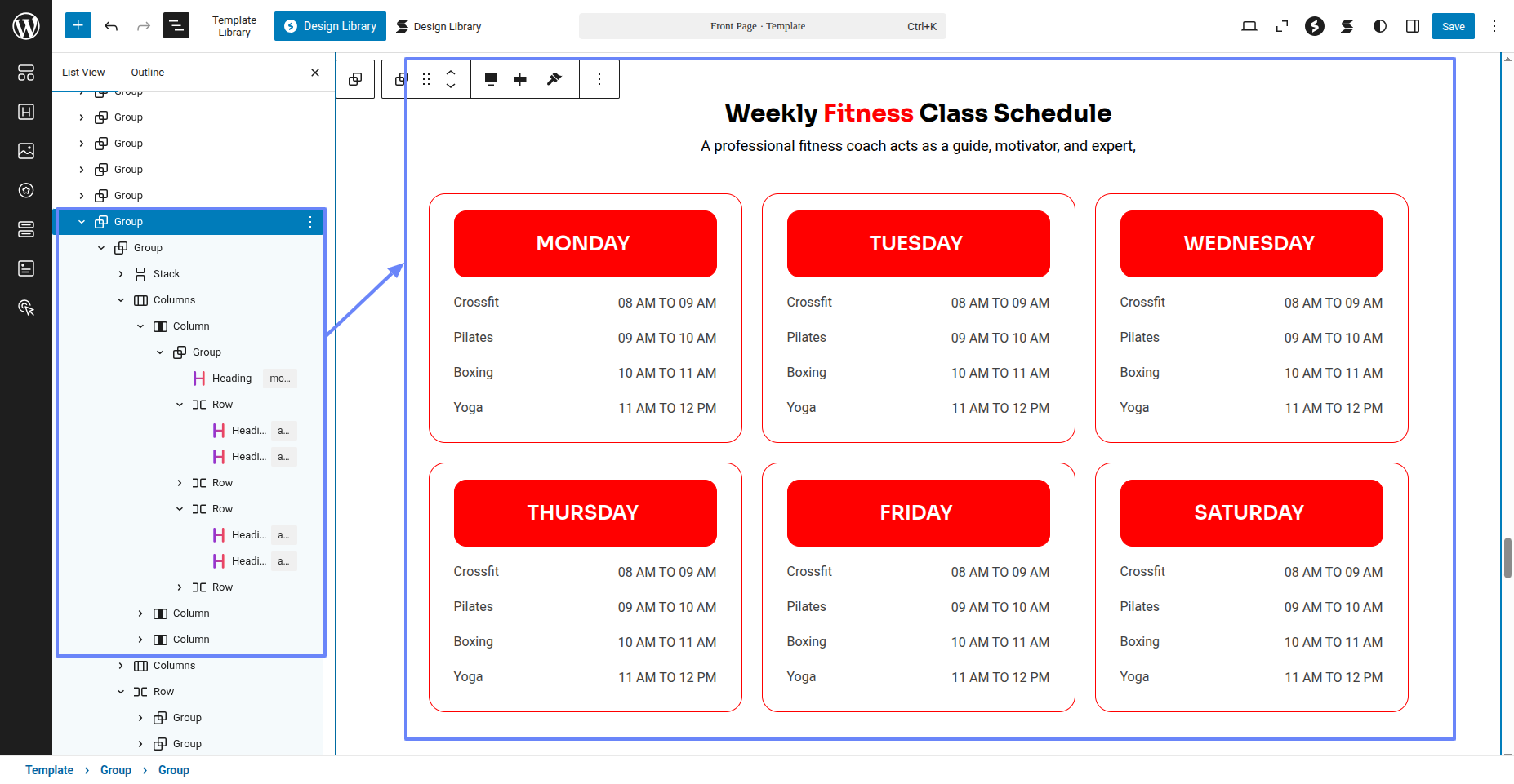 Tap "Fitness Instructor Pro" during the list that appears when the side panel is appeared. Each theme is a pattern that may is able to implemented to each page.