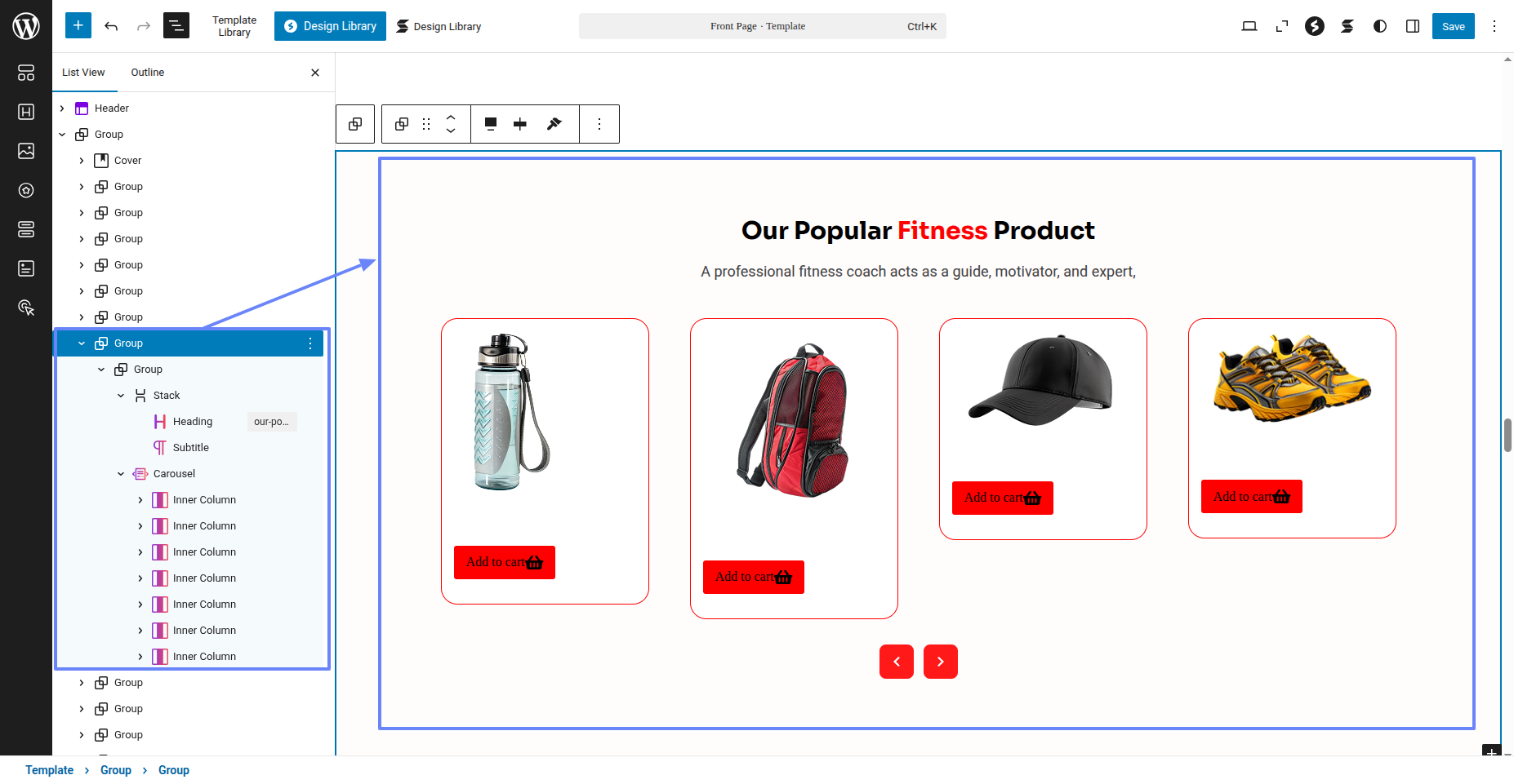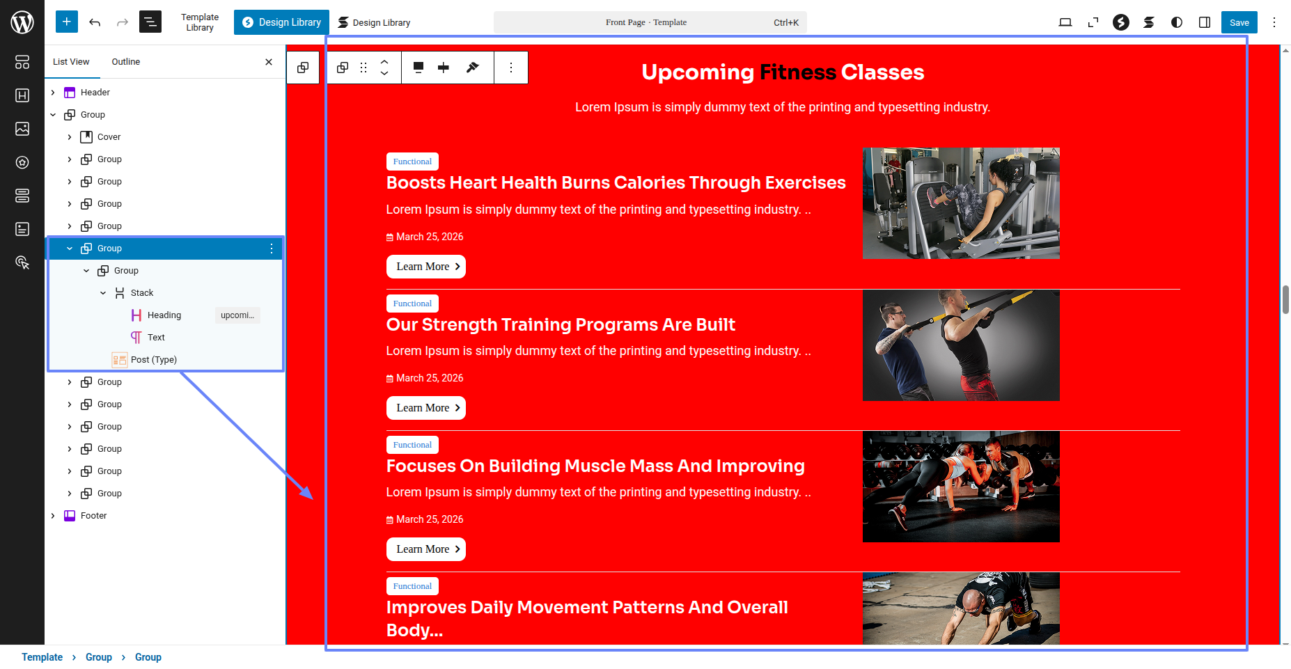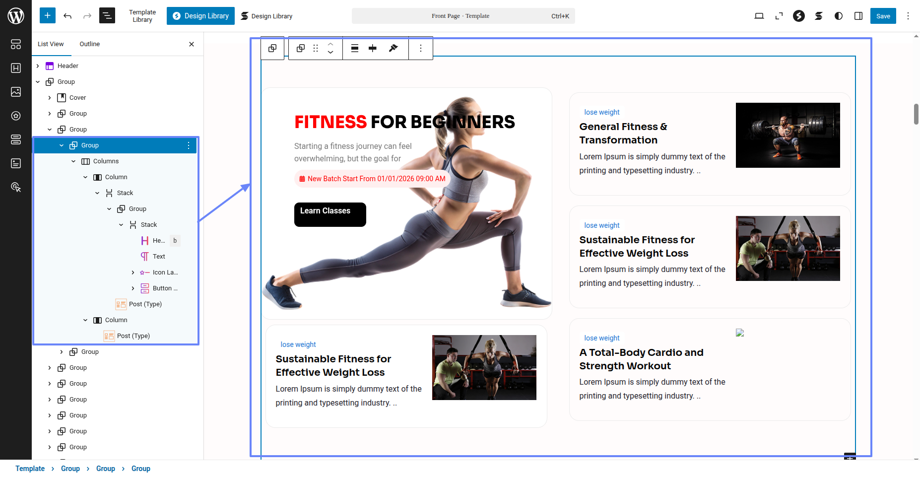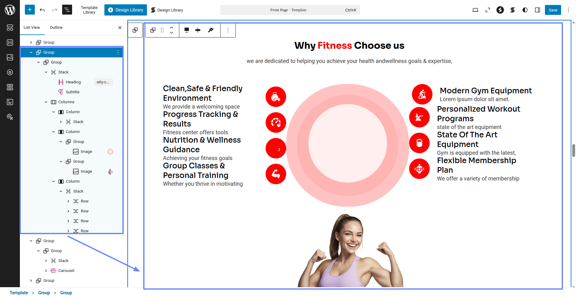 Tap "Fitness Instructor Pro" during the list that appears when the side panel is appeared. Each theme is a pattern that may is able to implemented to each page.