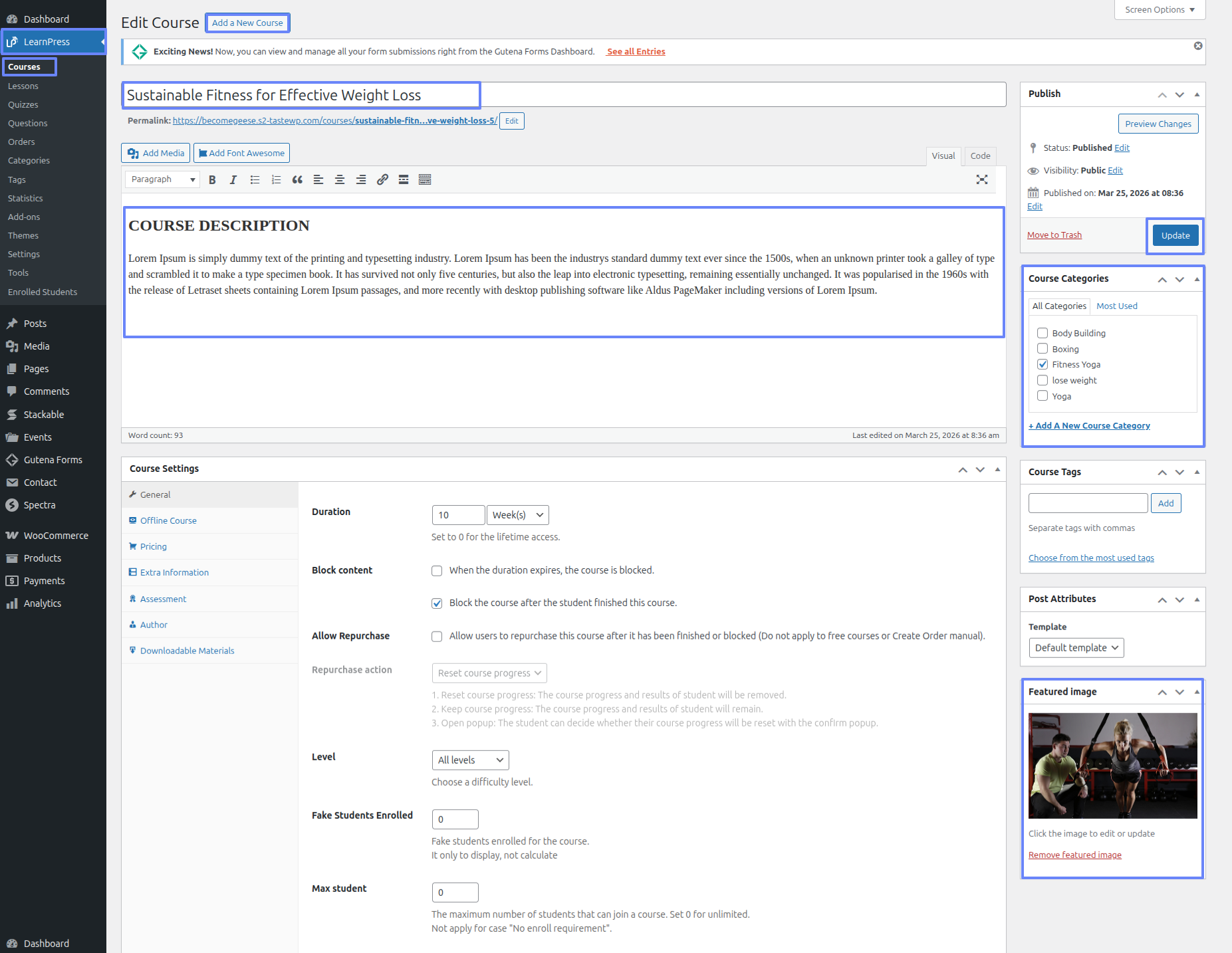 Continue perusing a Dashboard ~~ Move forward to LearnPress ~~ Courses ~~ Add New Courses.