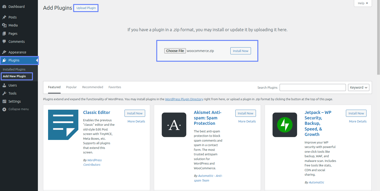 Continue perusing a Dashboard ~~ Move forward to Plugin ~~ Add New ~~ Upload Plugin