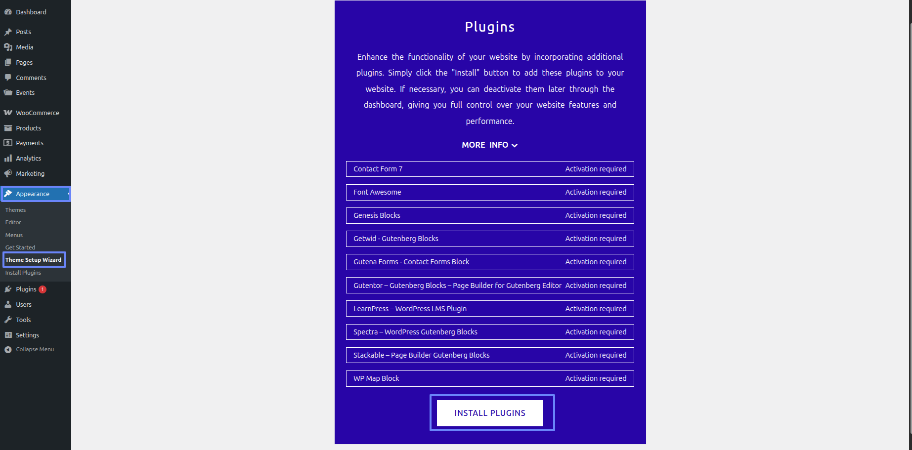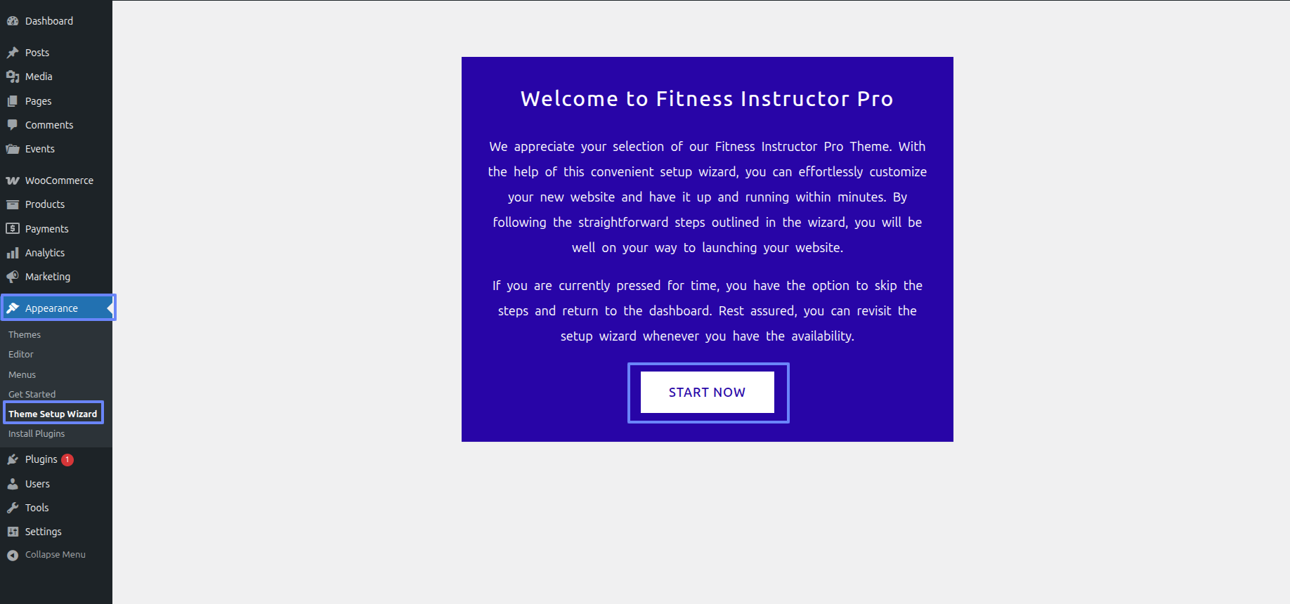 Continue perusing a Appearance ~~ Move forward to Theme Setup Wizard ~~ INSTALL PLUGINS