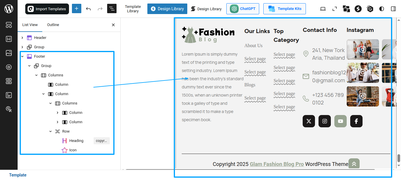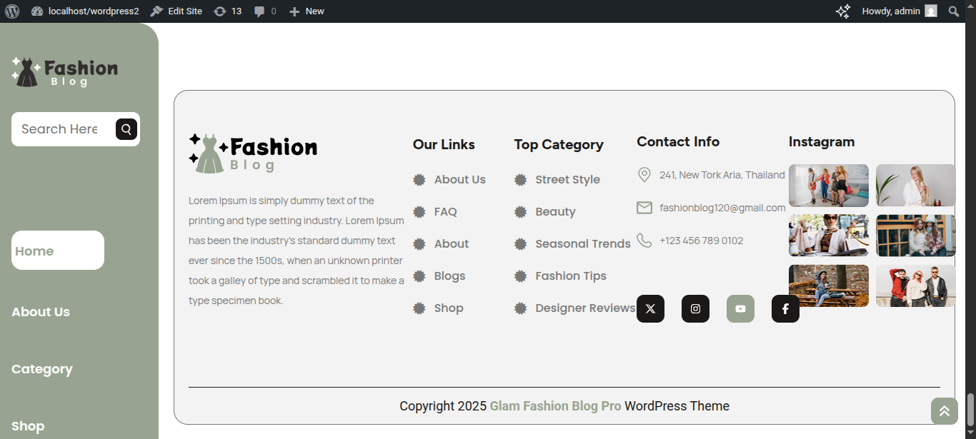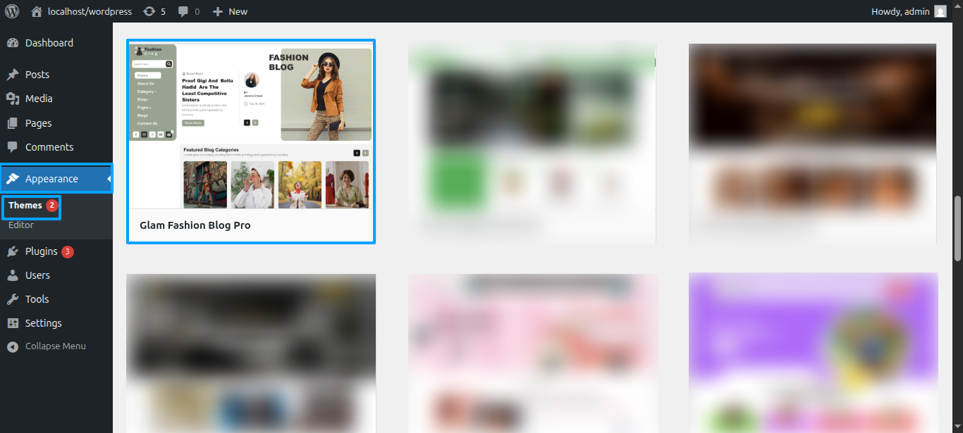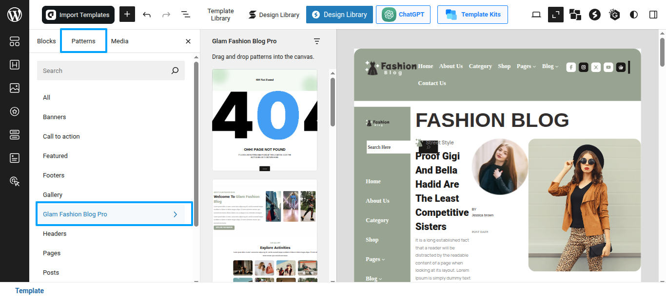 Tap "Glam Fashion Blog Pro" during the list that appears when the side panel is appeared. Each theme is a pattern that may is able to implemented to each page.