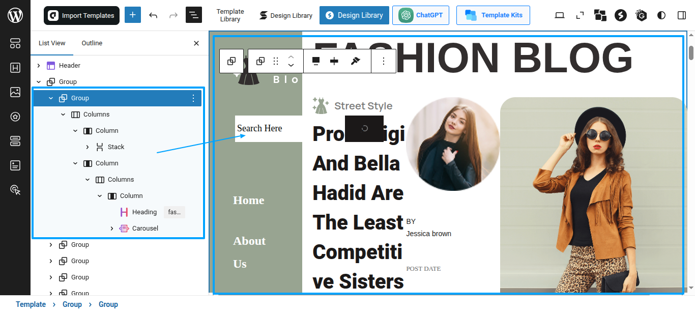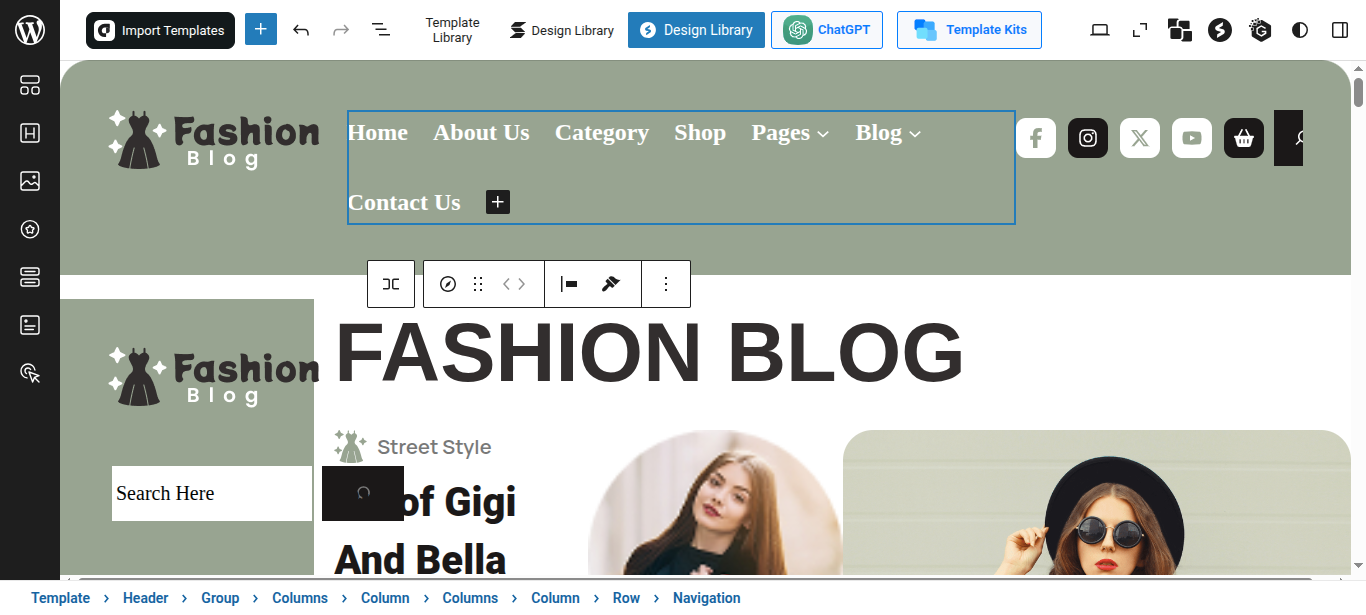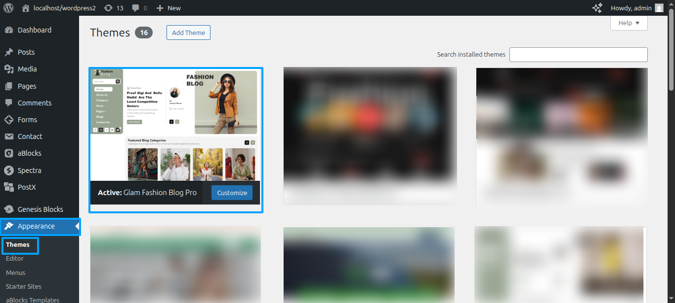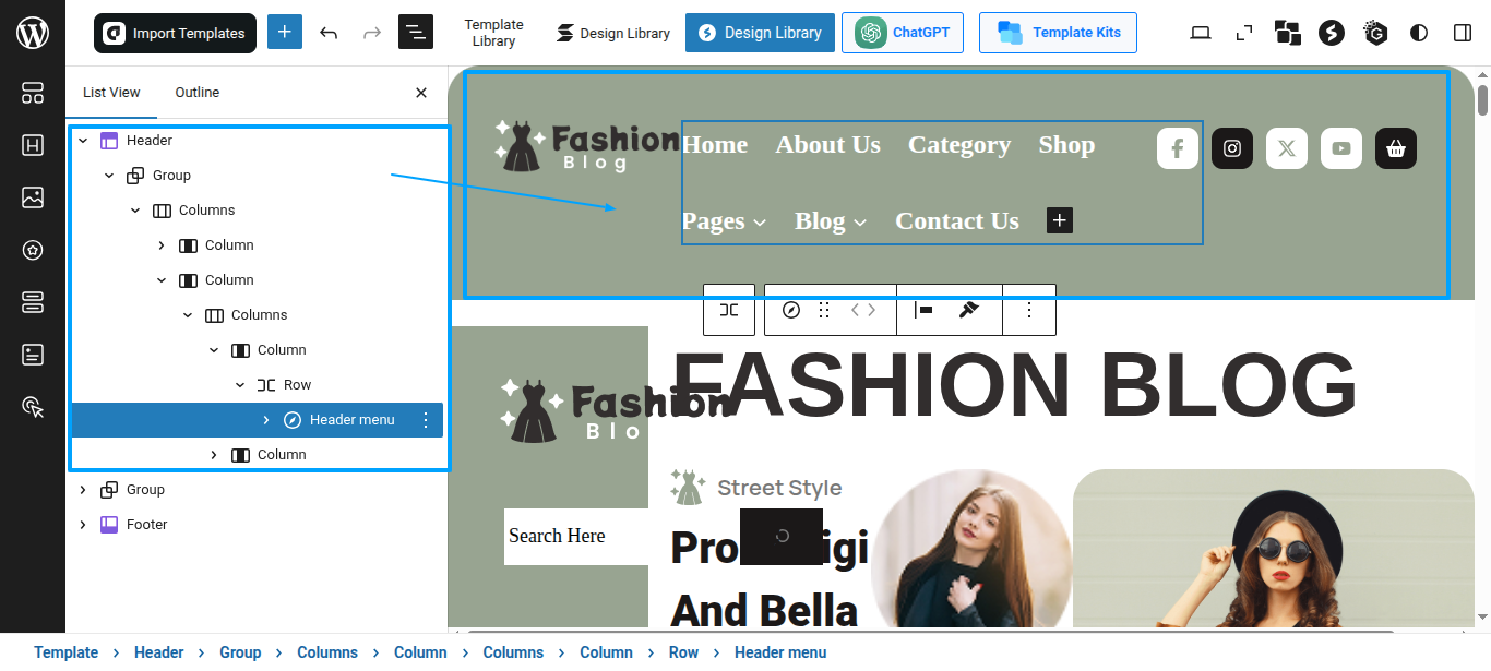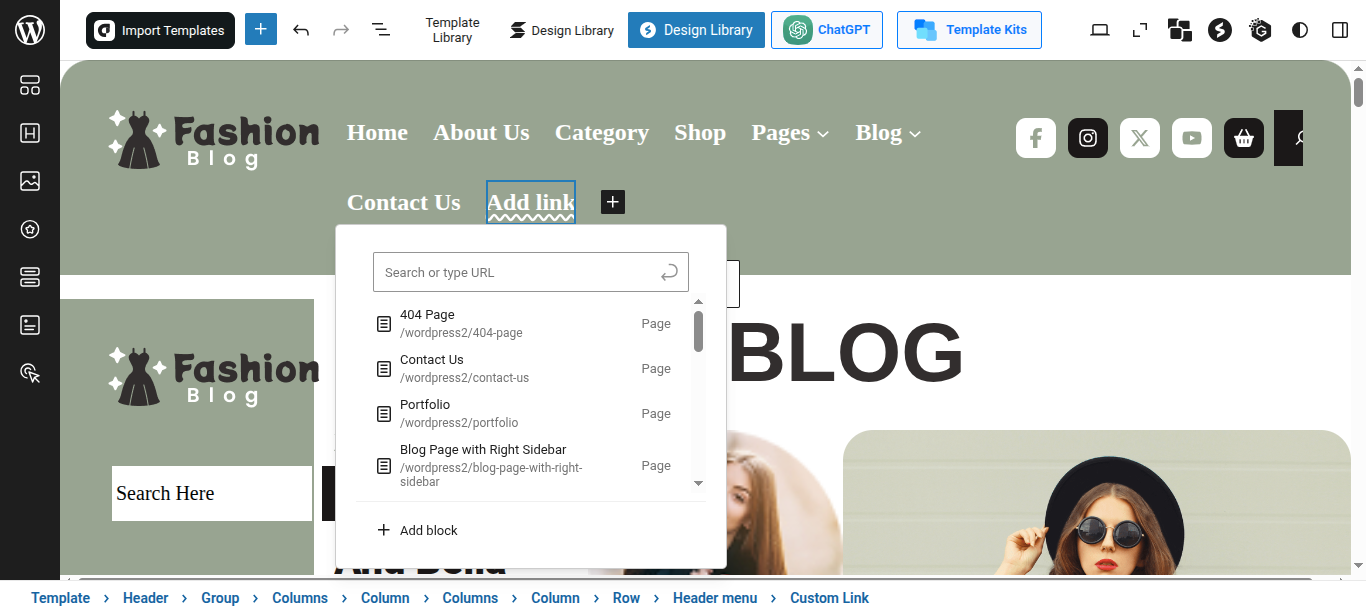 Tap "Glam Fashion Blog Pro" during the list that appears when the side panel is appeared. Each theme is a pattern that may is able to implemented to each page.