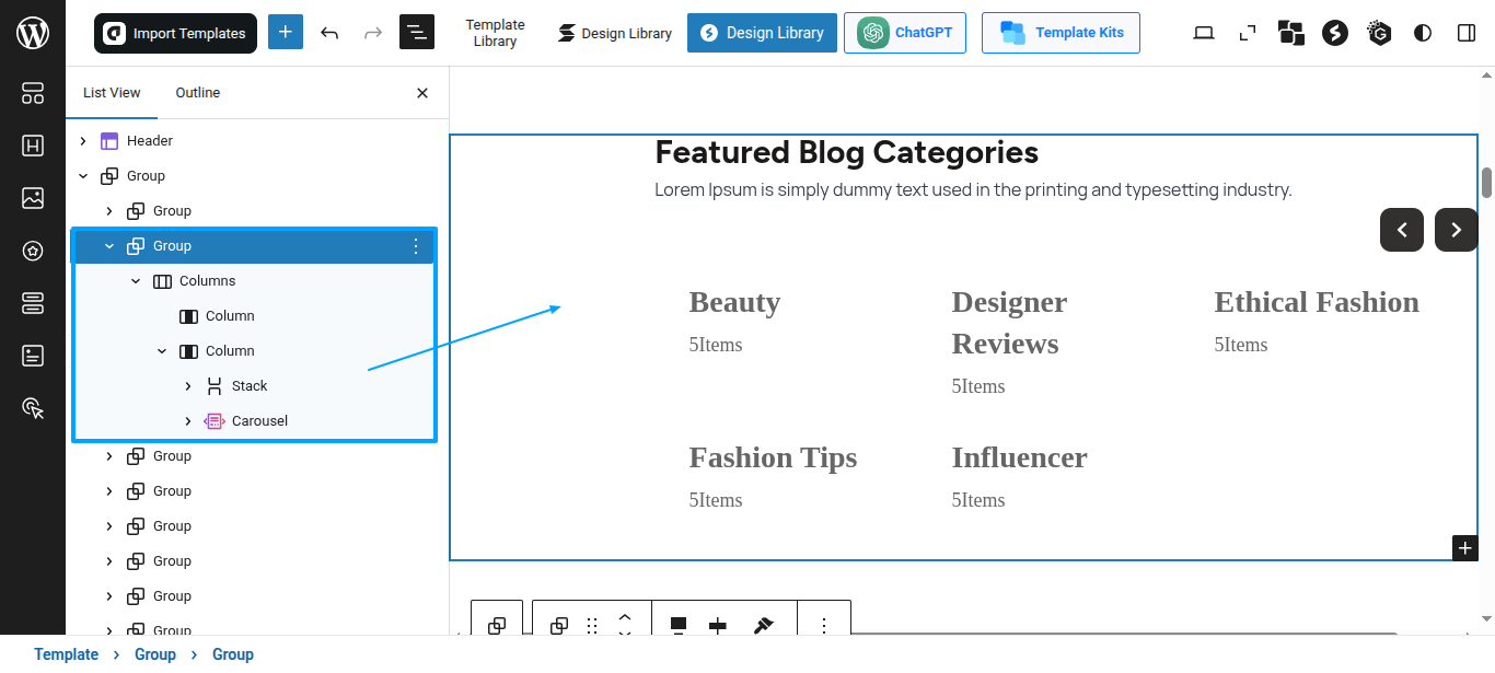 Exactly the procedure by which the Featured Blog Categories Portion is designed and tweaked.