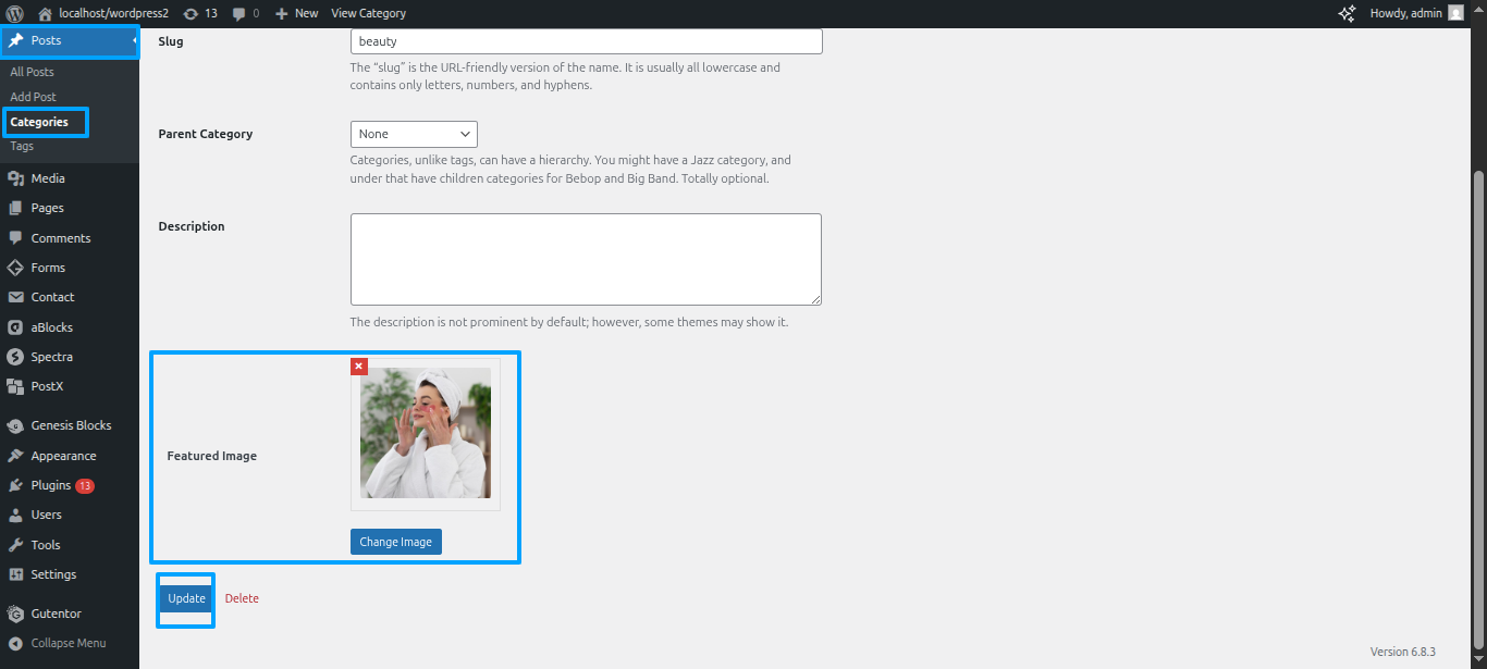 To upload the images in the categories Dashboard ~~ Move forward to Posts ~~ Categories