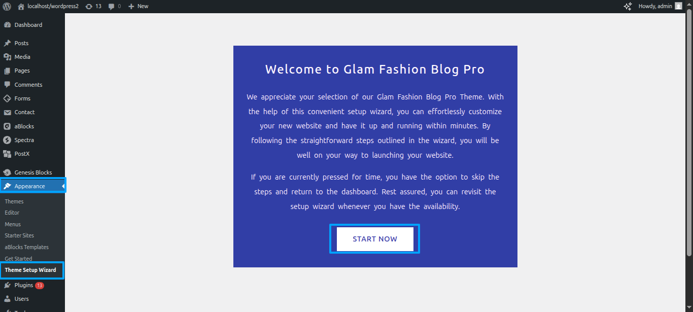 Continue perusing a Appearance ~~ Move forward to Theme Setup Wizard ~~ START NOW