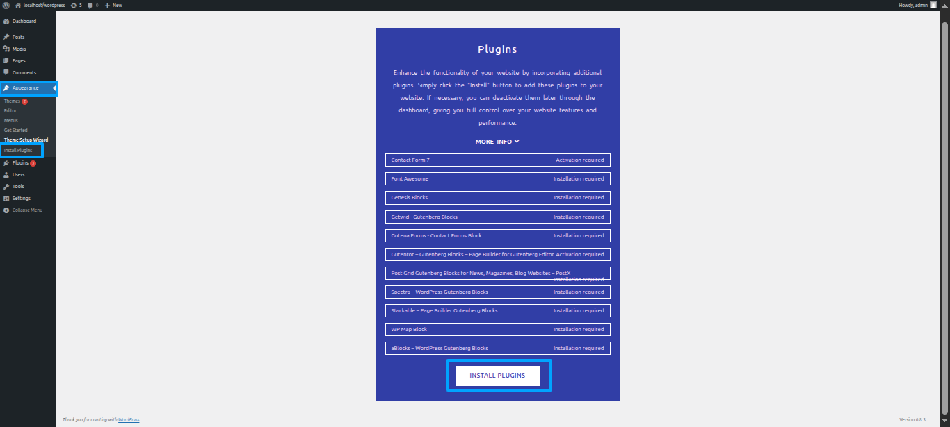 Continue perusing a Appearance ~~ Move forward to Theme Setup Wizard ~~ INSTALL PLUGINS
