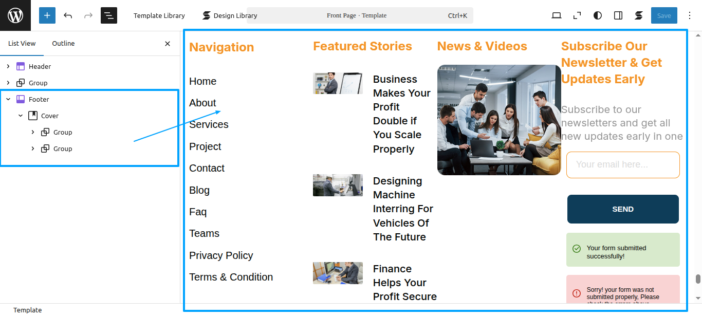 Exactly the procedure by which the Footer Portion is designed and tweaked.