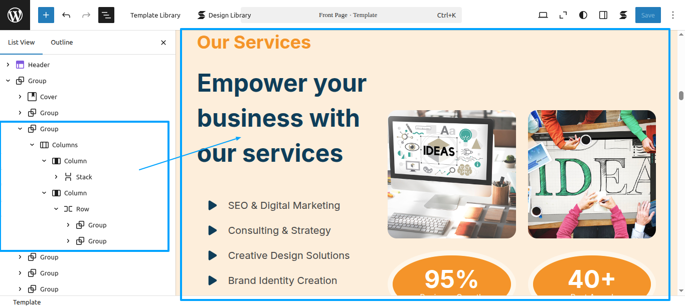 Exactly the procedure by which the Our Services Portion is designed and tweaked.
