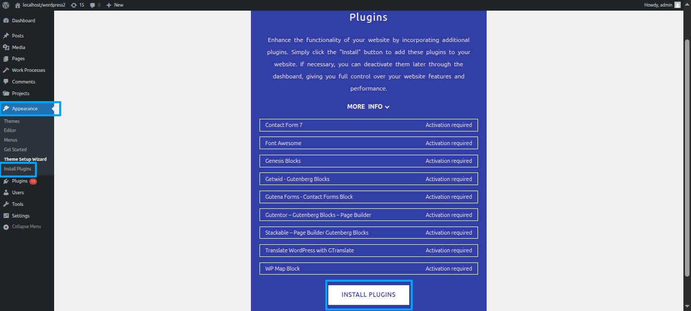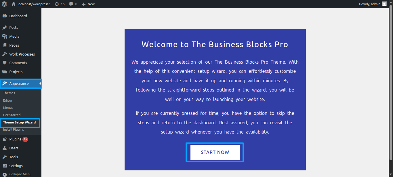 Continue perusing a Appearance ~~ Move forward to Theme Setup Wizard ~~ INSTALL PLUGINS