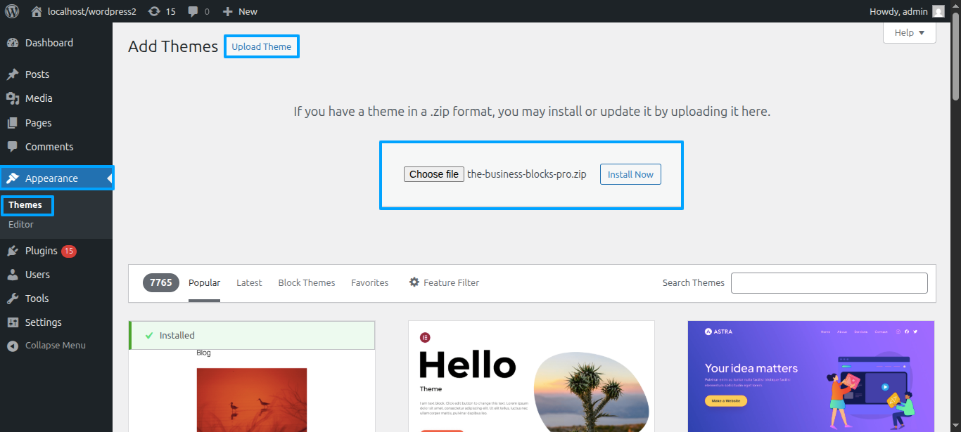 Eventually a theme has been transmitted, it must be activated.Activate the theme of a decision just entering Appearance ~~> Themes .