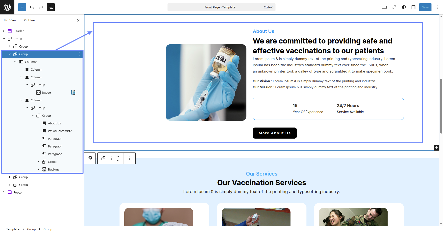 Exactly the procedure by which the Our Services Portion is designed and tweaked.