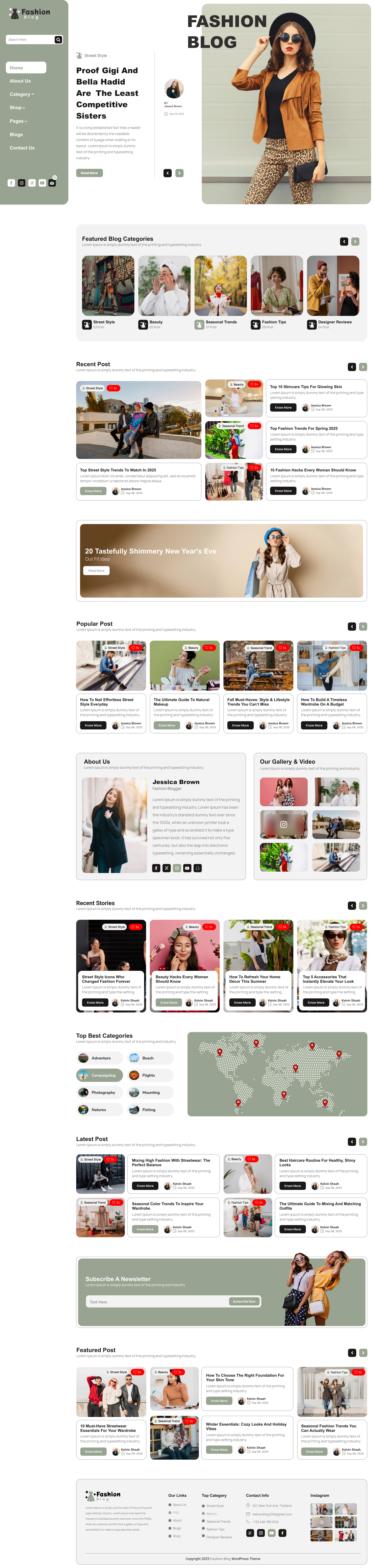The Fashion Blog WordPress Theme is a modern, elegant, and fully responsive solution designed for fashion bloggers, lifestyle influencers, Modern Fashion, Fashion Store, Fashion Boutique, Clothing Store, Apparel Store, Style Store, Trendy Clothing, Designer Clothing, Street Fashion, and creative agencies. Its minimal and sophisticated design ensures a clean and professional look, while features like retina-ready visuals, banner sections, and Call to Action (CTA) buttons help showcase content effectively. With user-friendly navigation, interactive elements, and customization options, this theme is perfect for creating a stylish online presence. Developers appreciate its secure and optimized code, Bootstrap integration, and shortcodes, making it a versatile and luxurious platform to engage audiences and highlight fashion trends effortlessly.